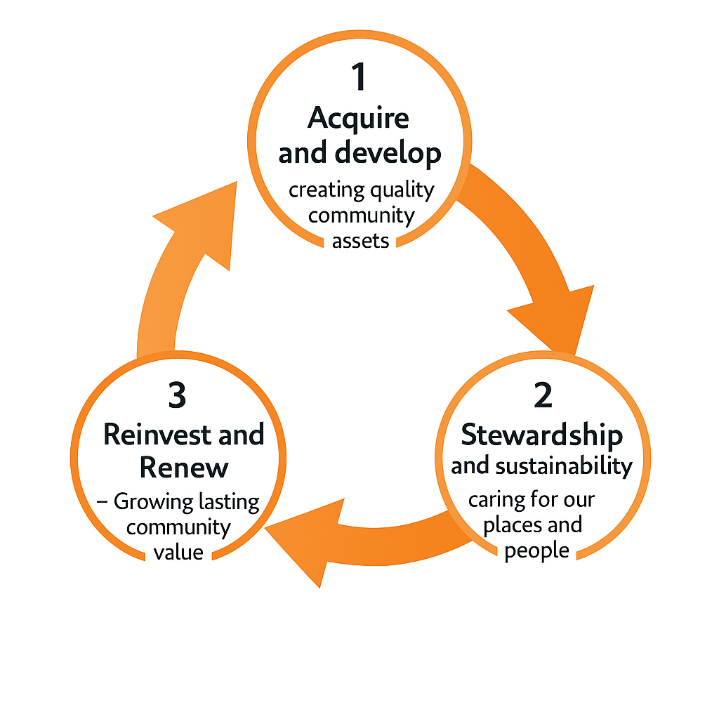 Formed as a registered Industrial and Provident Society (IPS) in 2014, the Trust operates independently but always in partnership with residents, local authorities, and community partners to ensure that development meets local needs — not external interests.